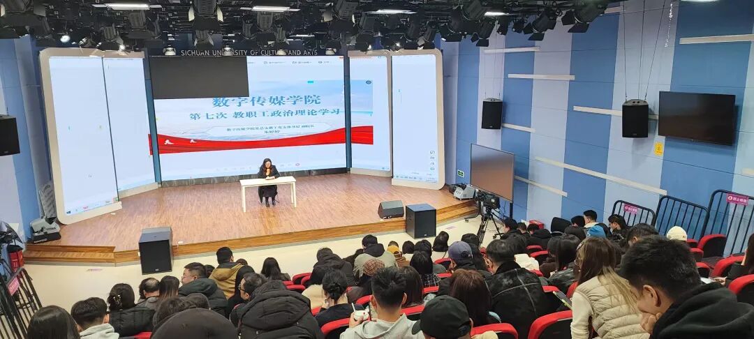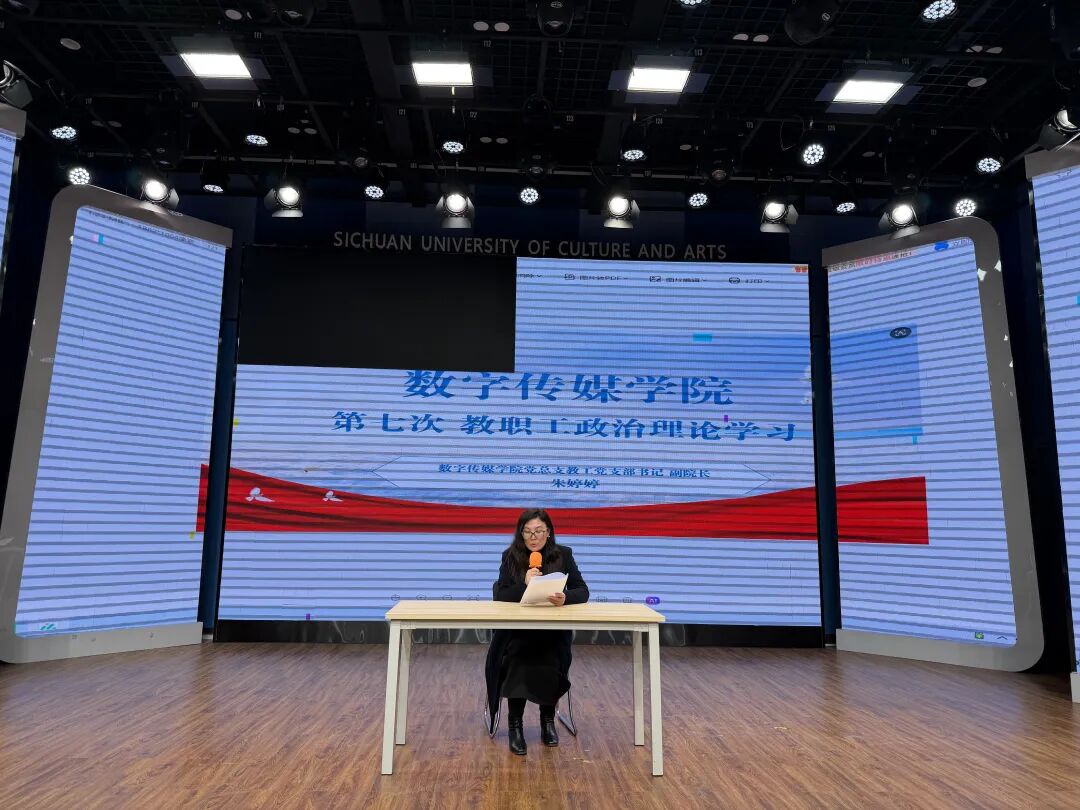 为深入学习贯彻党的最新理论成果,落实党中央关于教育、科技、人才一体发展的战略部署,数字传媒学院于2025年12月8日在融媒体中心二号演播厅成功举办了本学期第七次教职工政治理论学习会议。学院党总支书记管琳宇、副院长陈继光、各专业负责人参加学习,本次学习由学院副院长、教工党支部书记朱婷婷领学,
