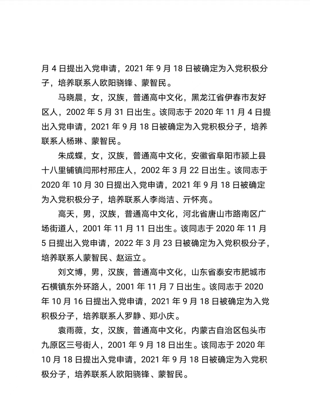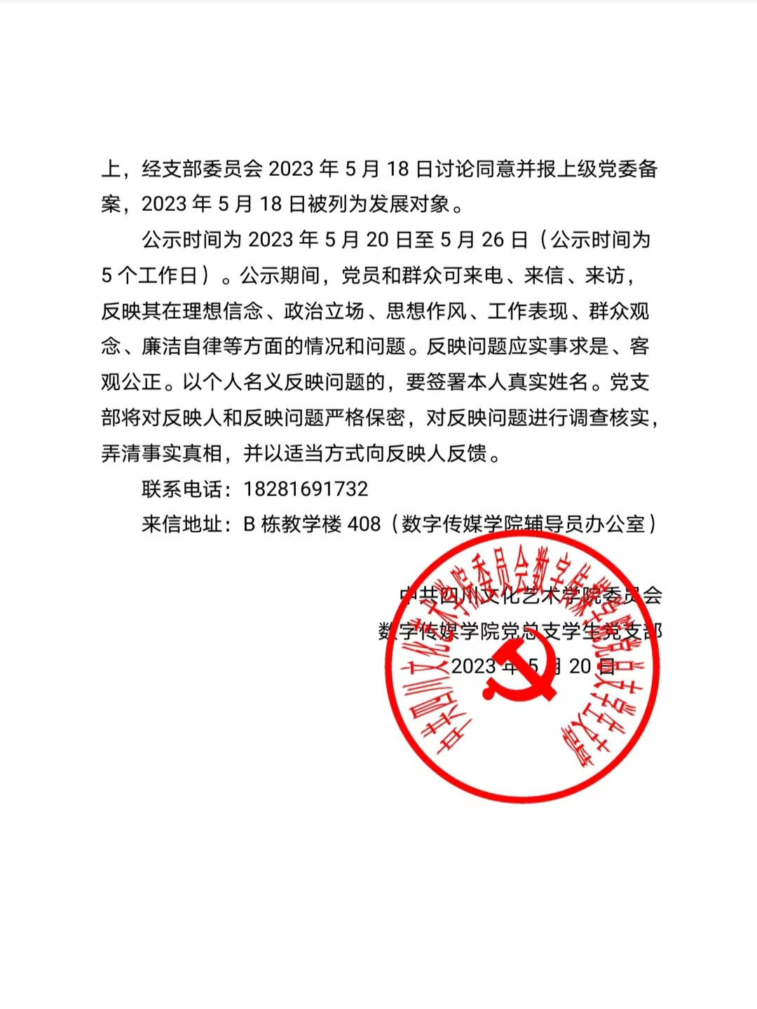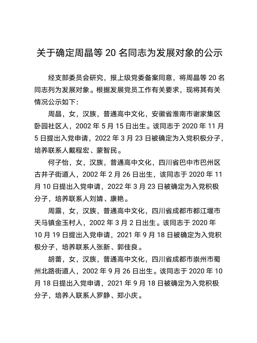 关于确定周晶等20名同志为发展对象的公示