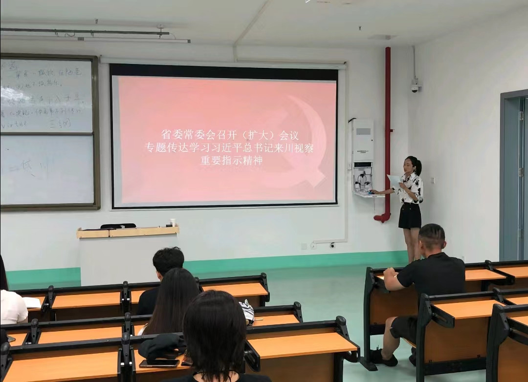 为学习宣传贯彻习近平总书记来川视察重要指示精神。为了始终铭记关怀不负重托感恩奋进,以新担当新作为奋力谱写中国式现代化四川新篇章,认真学习《关于学习宣传贯彻习近平总书记来川视察重要指示精神总体安排》《关于深入学习贯彻习近平总书记来川视察重要指示精神推动新时代治蜀兴川再上新台阶的意见》相关重点内容。2023年9月8日,数字传媒学院党总支学生党支部在梓潼校区B栋教学楼101教室开展了本月组织生活会。会议由支部书记王娜主持,支部全体党员参加。