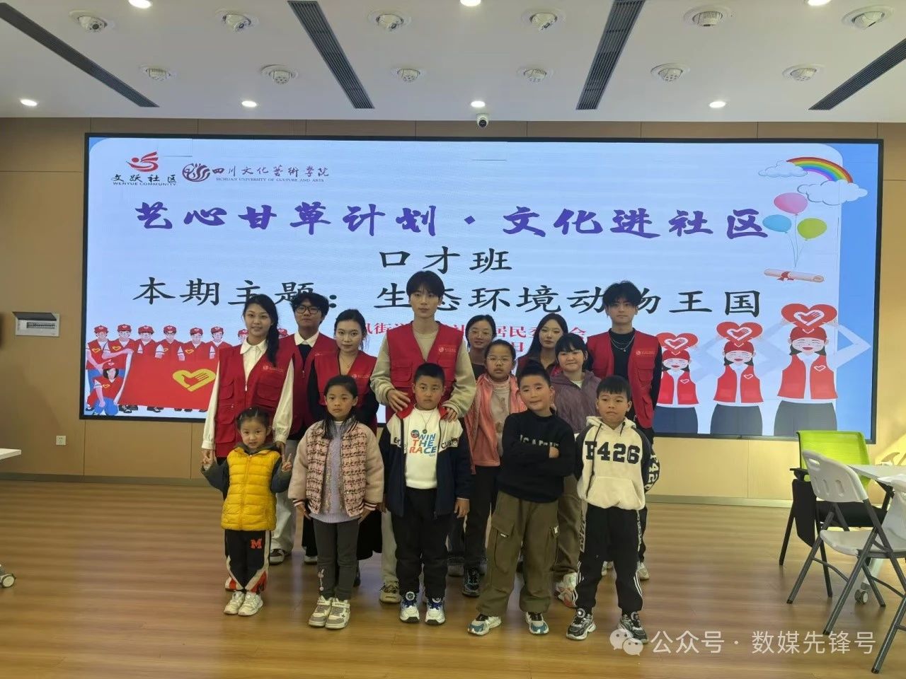 在本学期扎实推进的 “文化进社区” 志愿服务活动进程中,我校数字传媒学院的志愿者们满怀昂扬斗志与澎湃激情,深度融入其中,充分发挥专业特长,为社区儿童带来了精彩纷呈的口才教育与播音与主持艺术体验之旅。