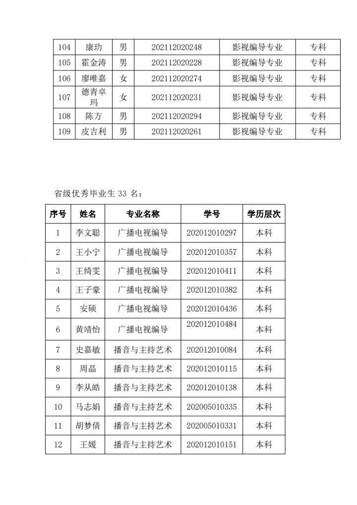 2023年优秀毕业生评定结果公示