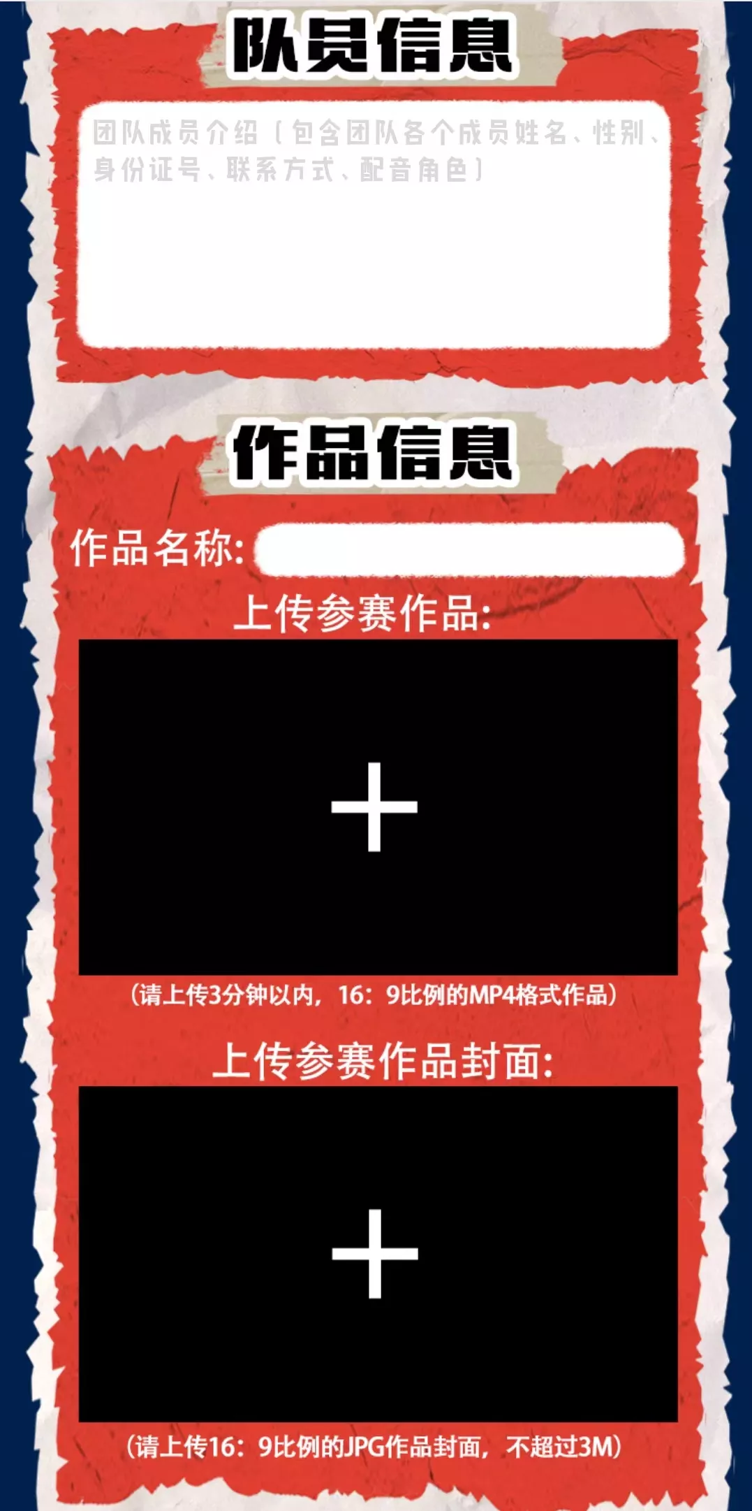 ·个人赛作品时长—3分钟以内;·团队赛人数及时长—人数5人以内,作品3分钟以内;