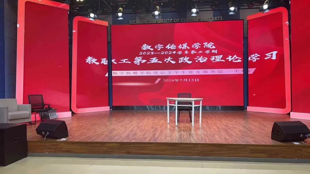 为进一步推进学校“学习型”教职工队伍建设,切实提高学校教职工的政治理论水平和政治素养,为学校的高质量发展建设提供坚实的思想保证和强大的精神动力,数字传媒学院于2024年5月13日在融媒体中心二号演播厅开展了2023—2024学年第二学期教职工第五次政治理论学习活动。数字传媒学院院长潘力超、副院长陈继光、院长助理、办公室主任兼广播电视工程专业负责人张新、专业负责人及全院教职工参加了本次学习。