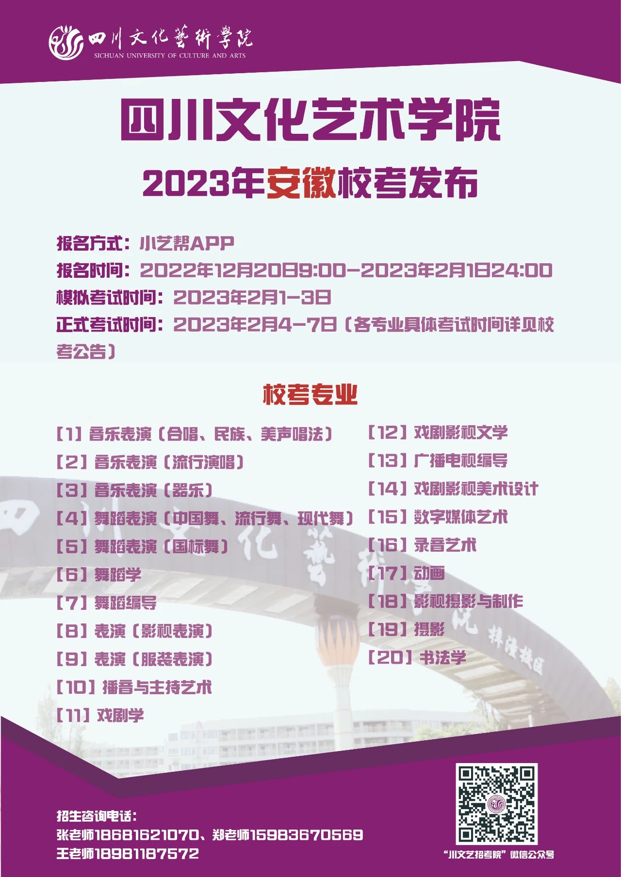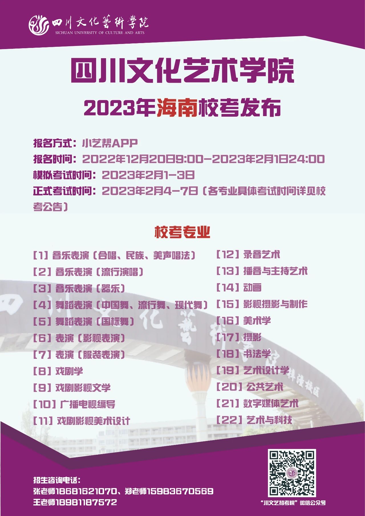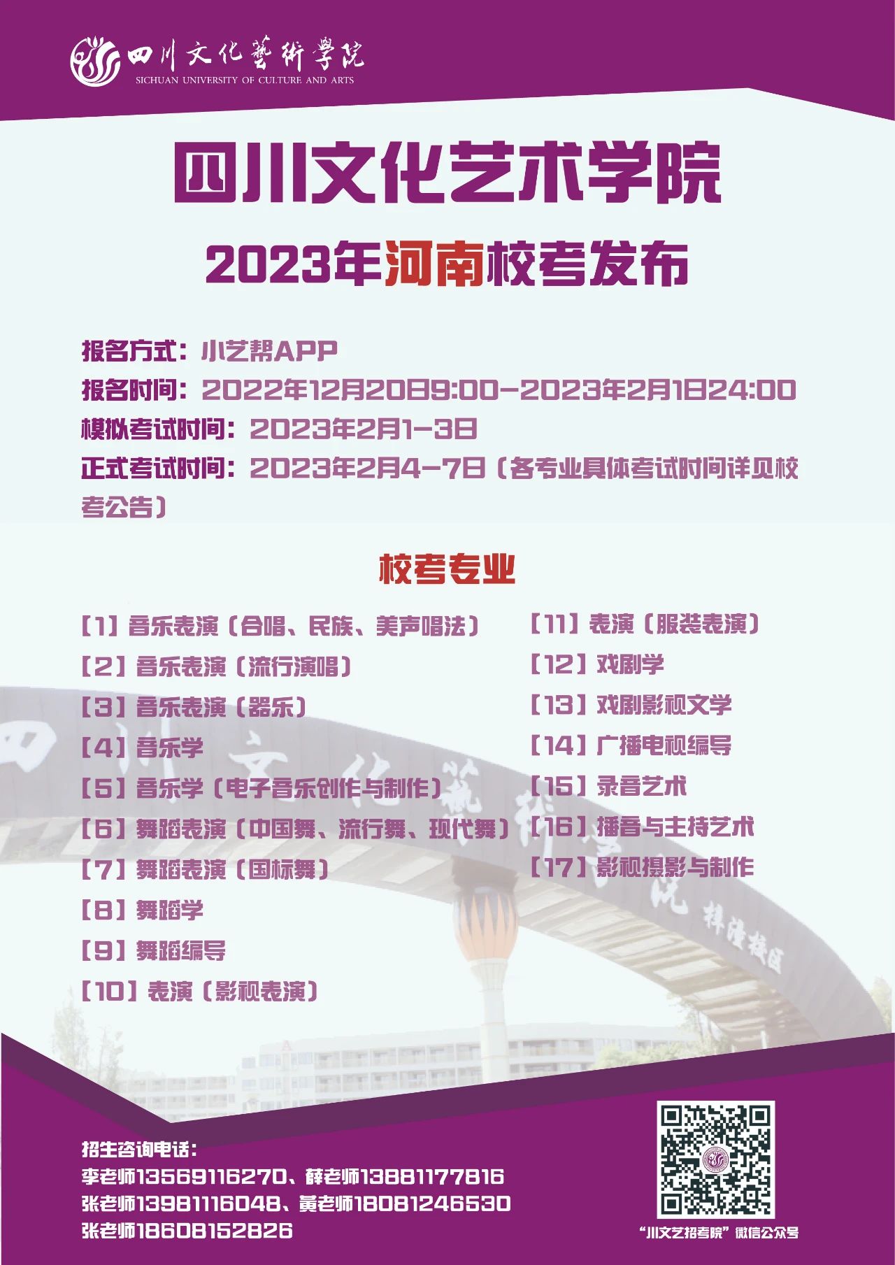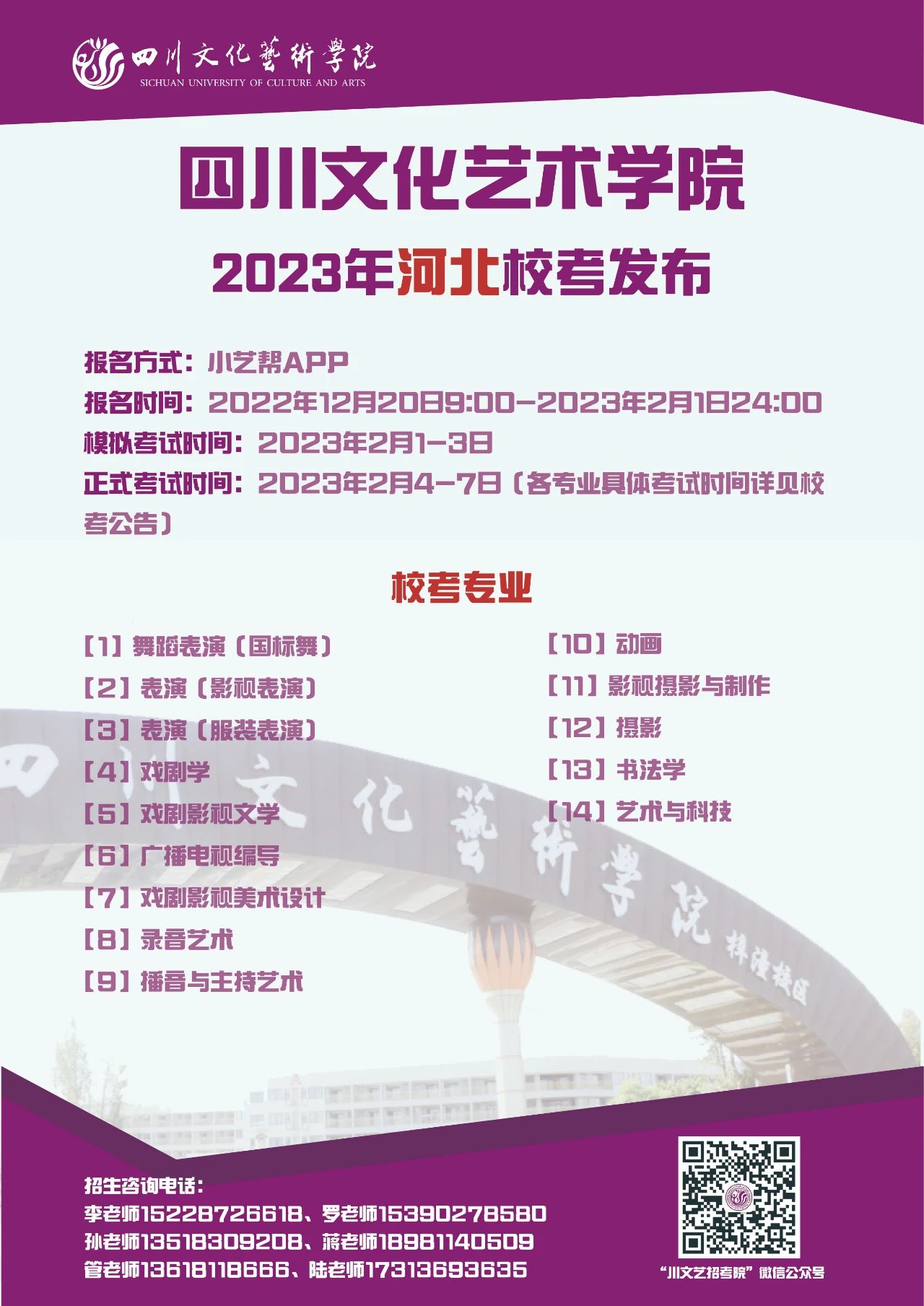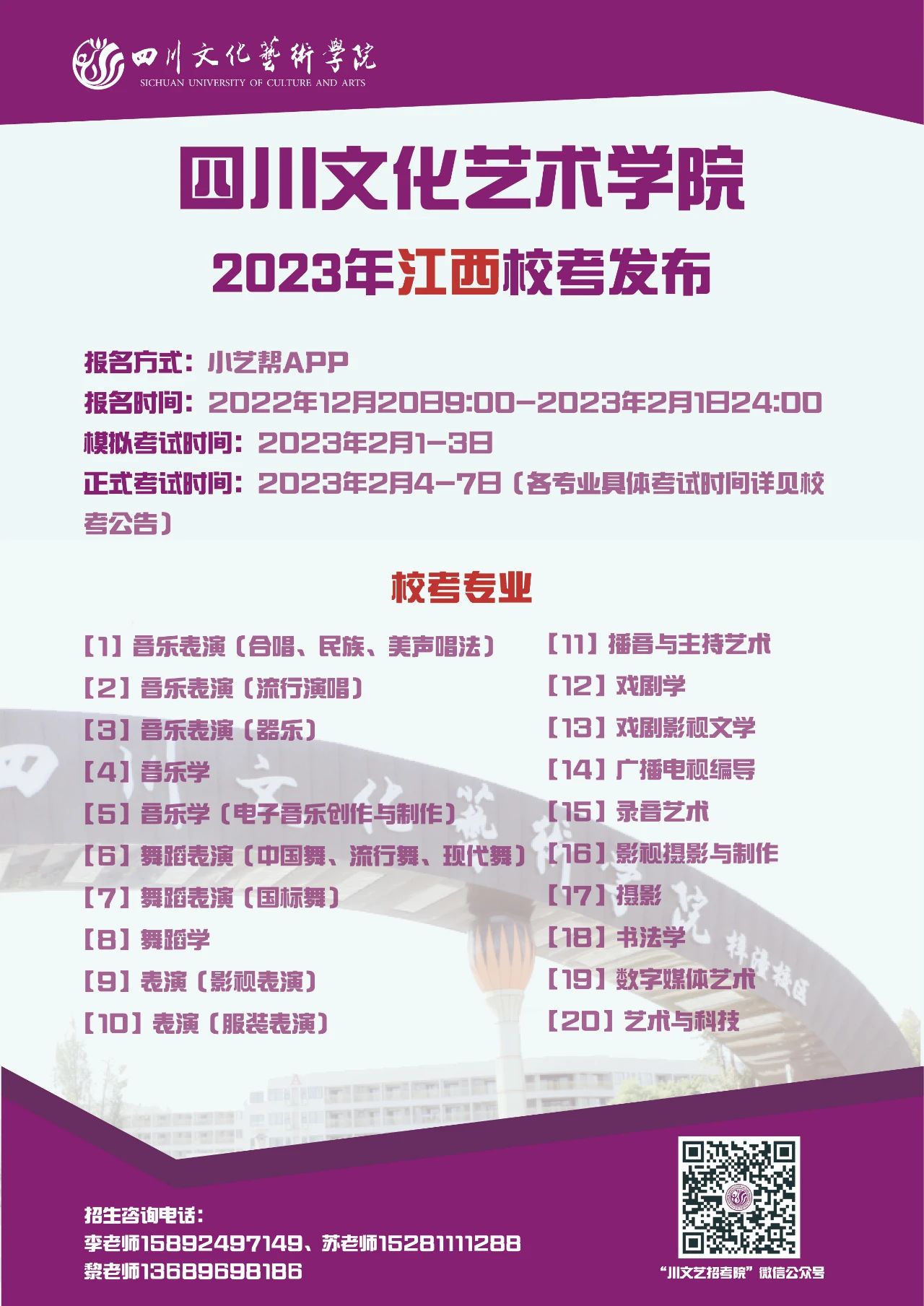 四川文化艺术学院2023年省外校考专业发布啦!
