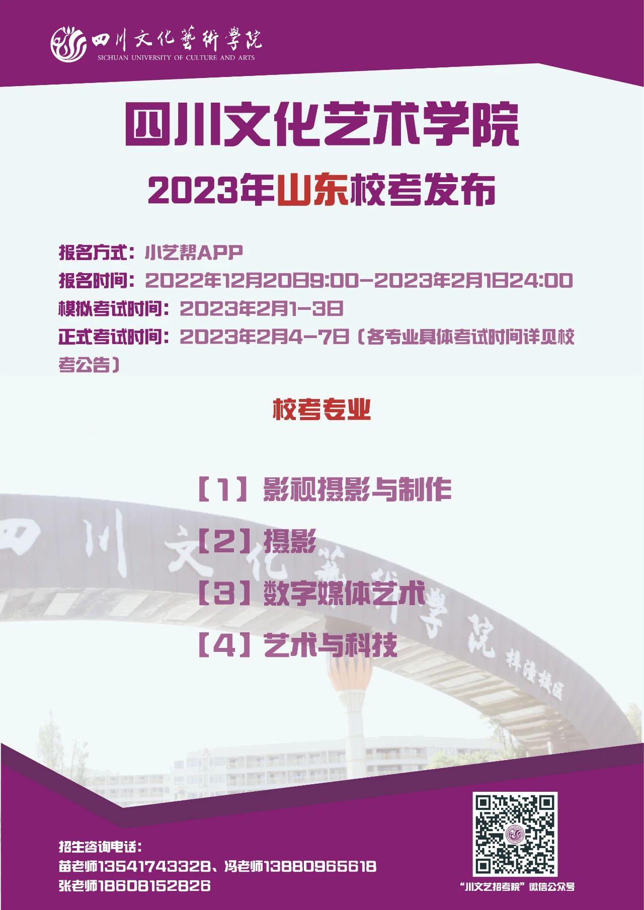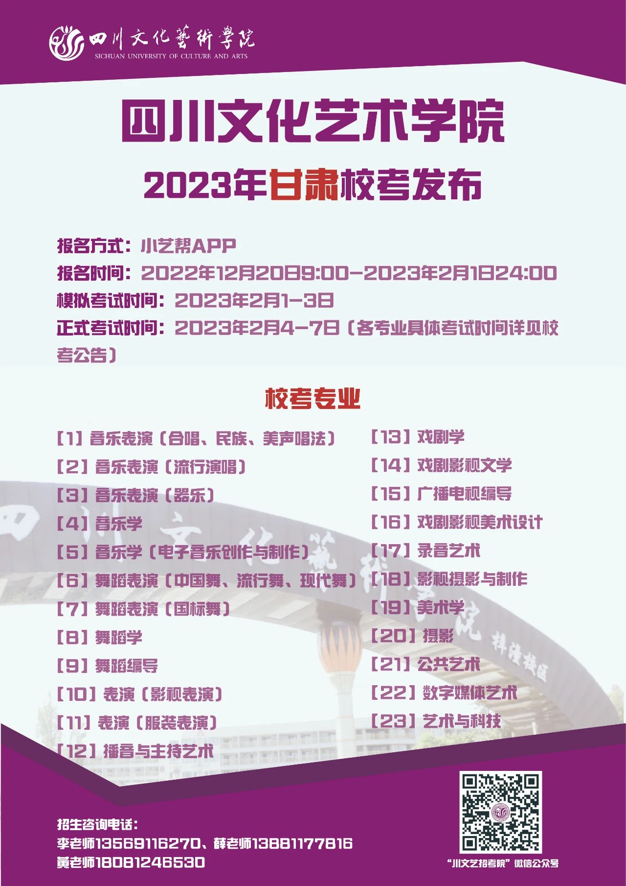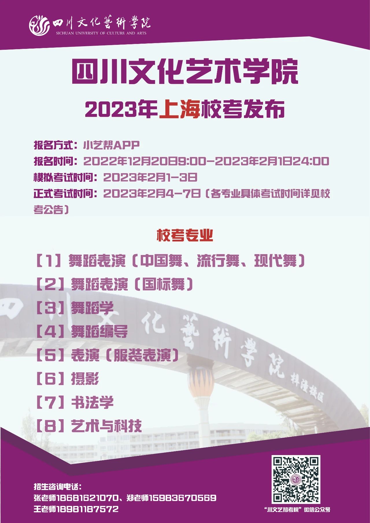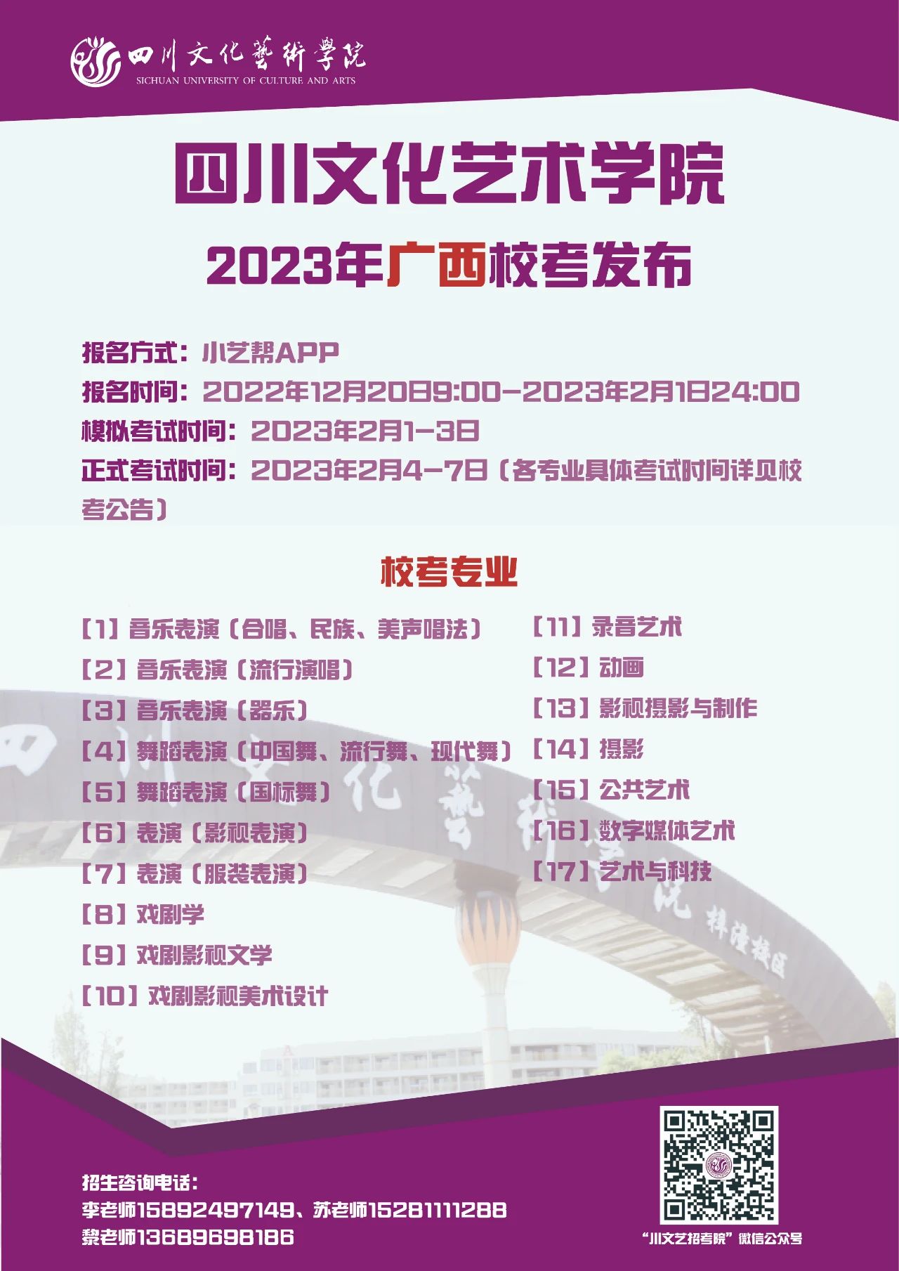 四川文化艺术学院2023年省外校考专业发布啦!