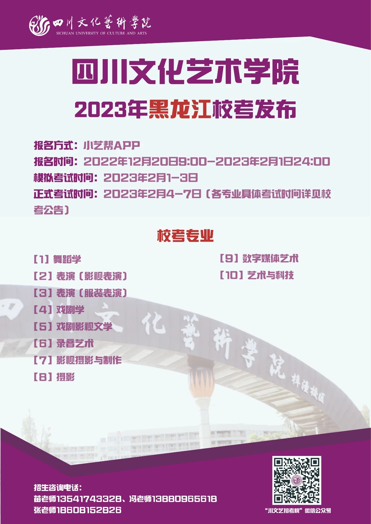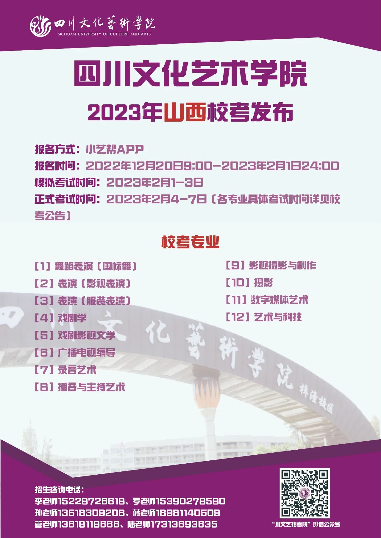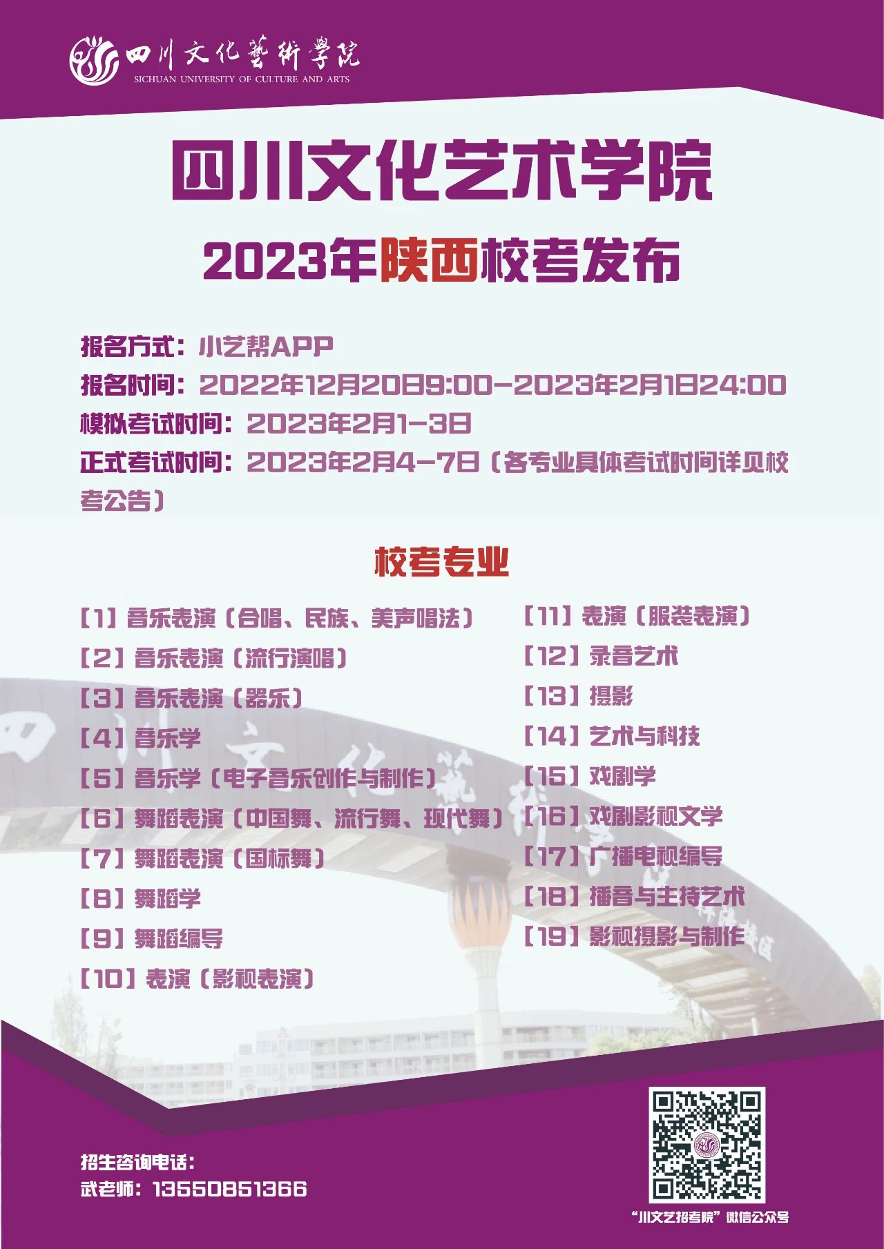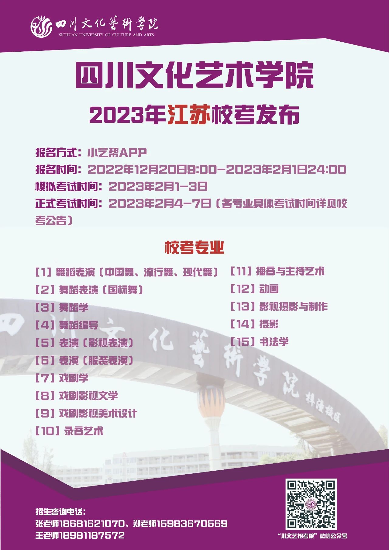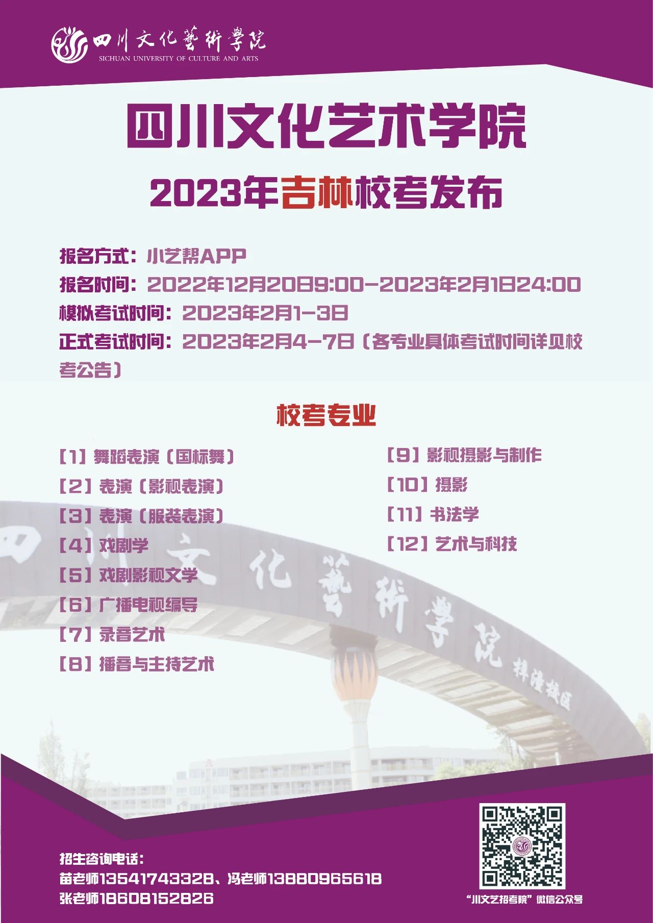 四川文化艺术学院2023年省外校考专业发布啦!