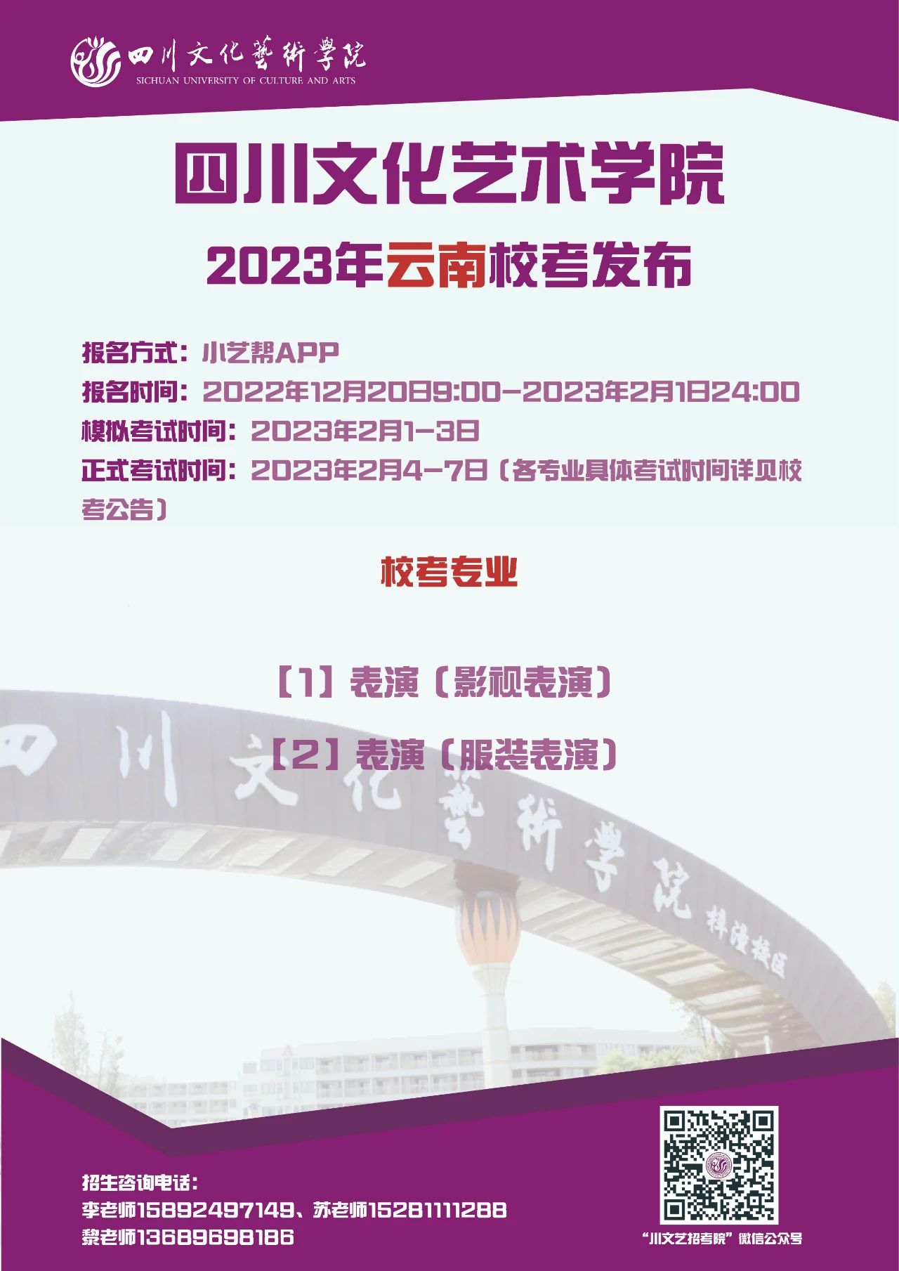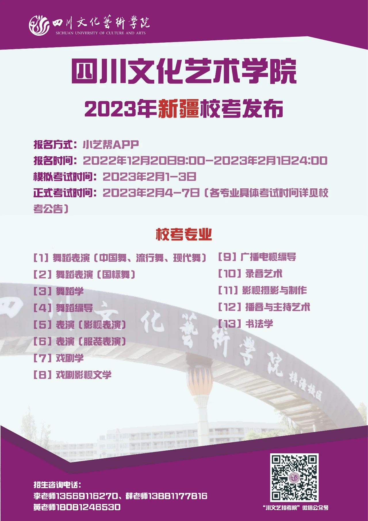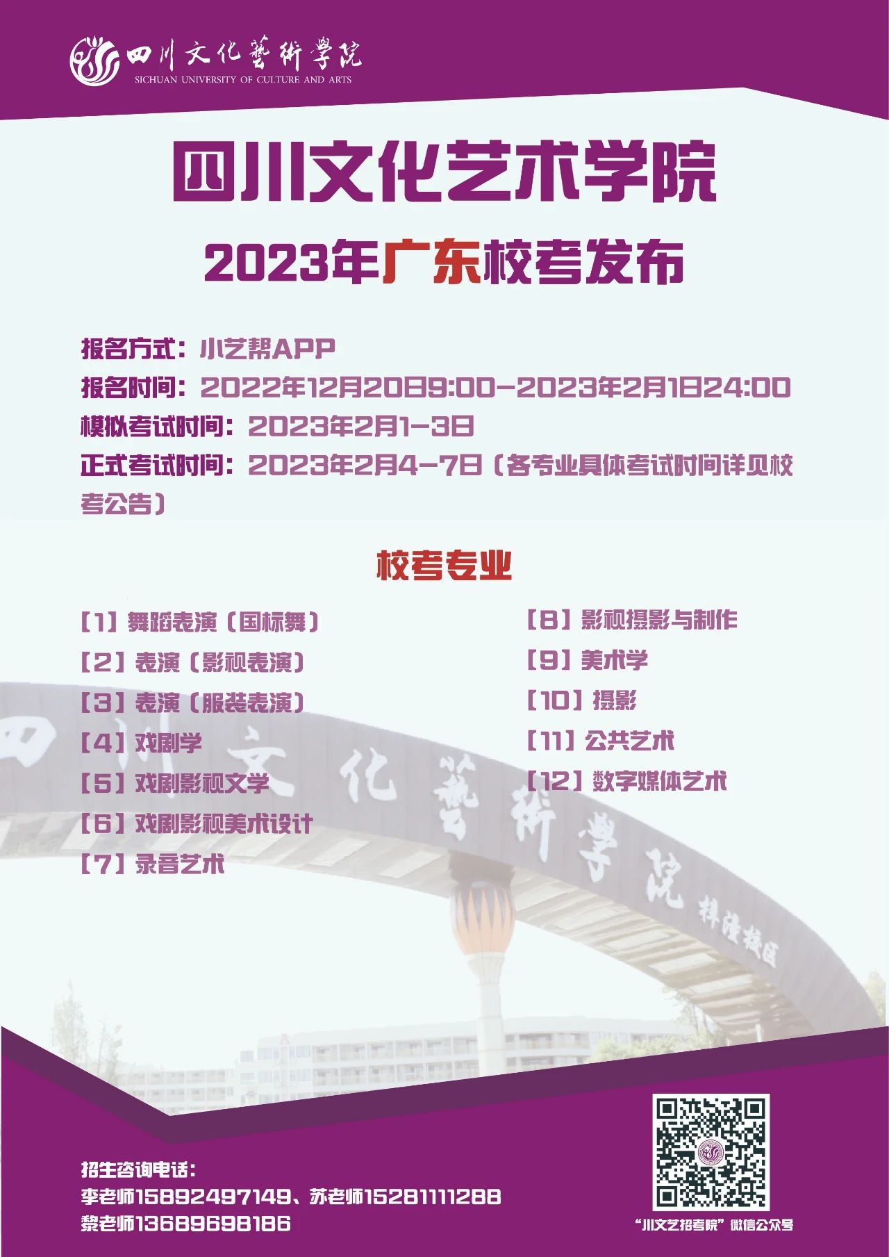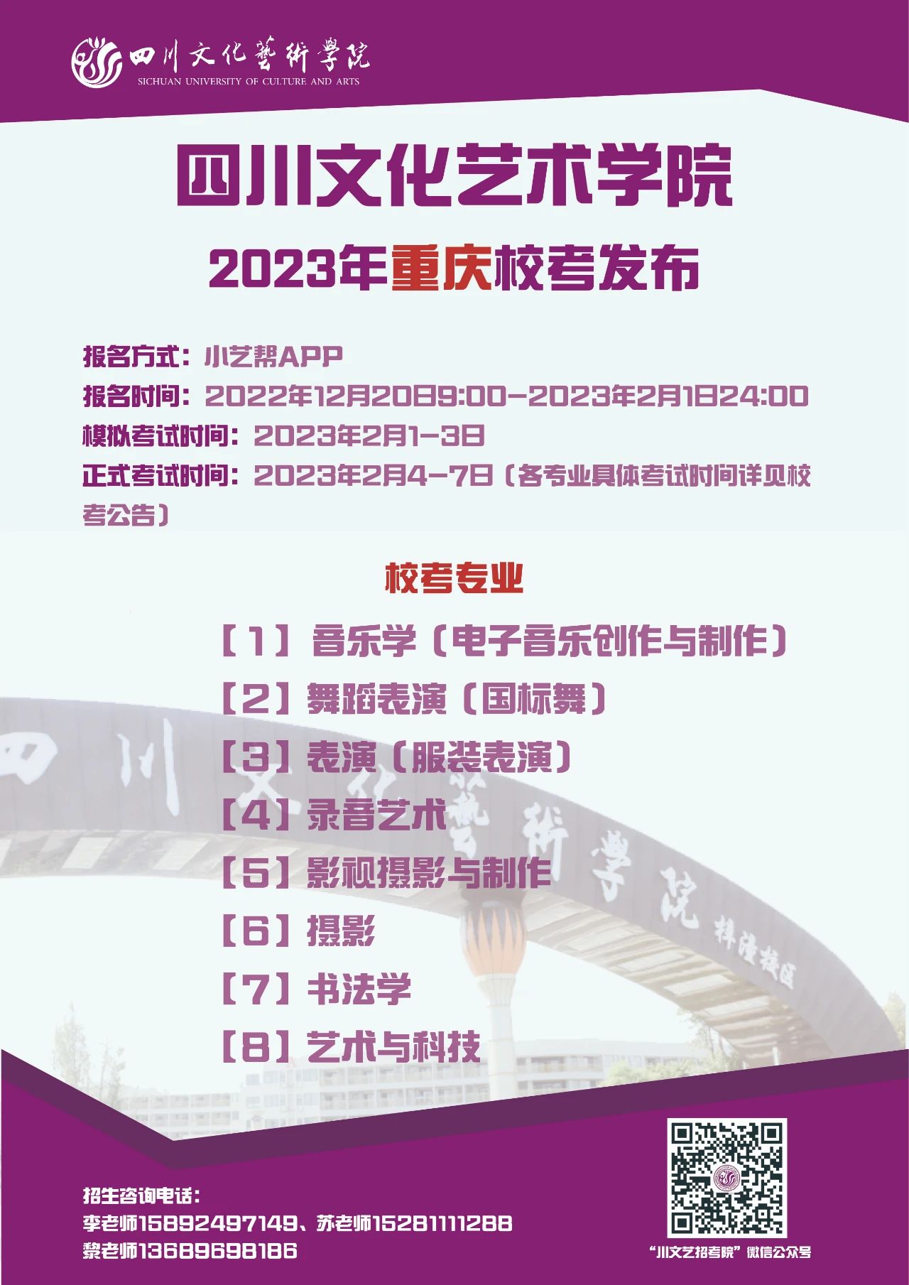 四川文化艺术学院2023年省外校考专业发布啦!