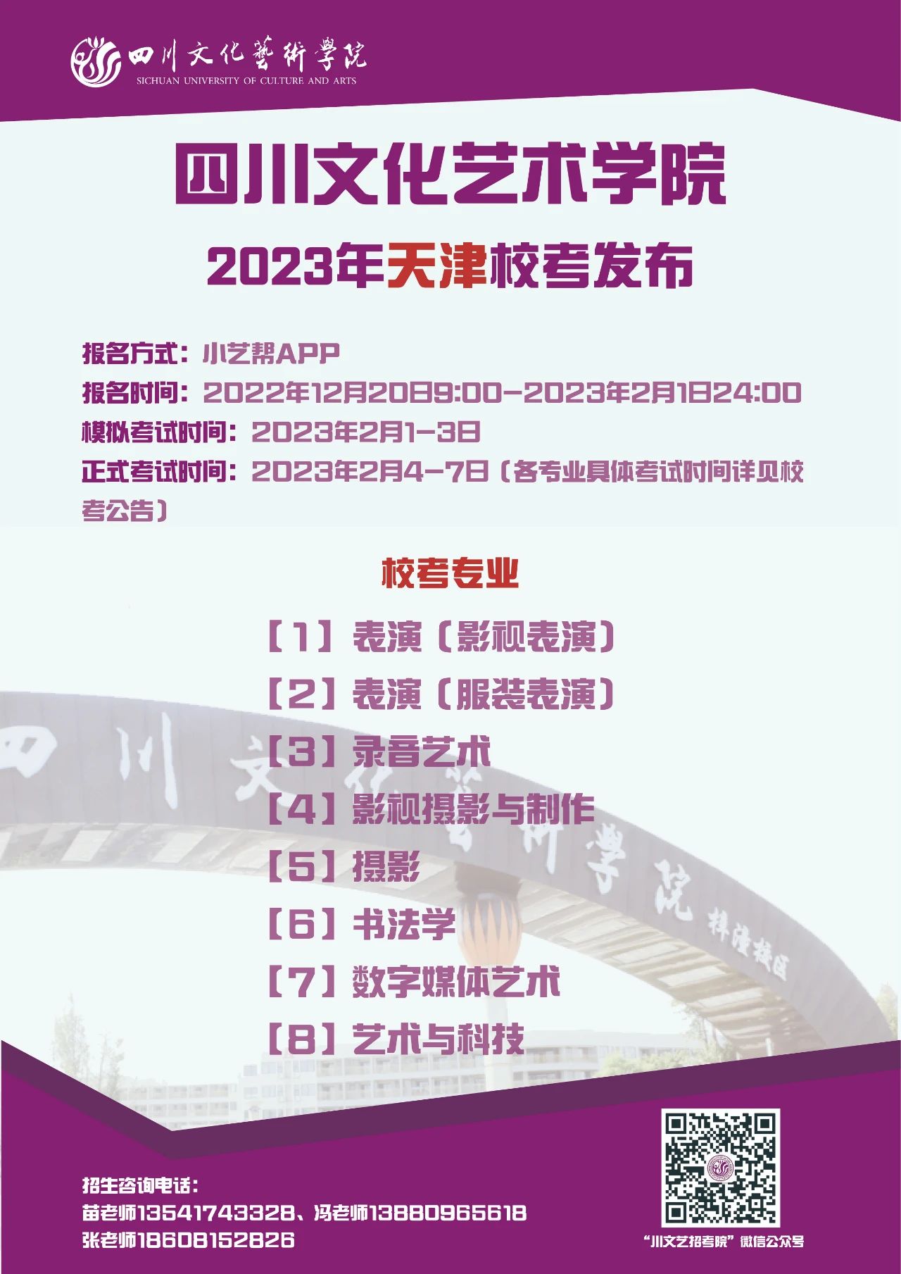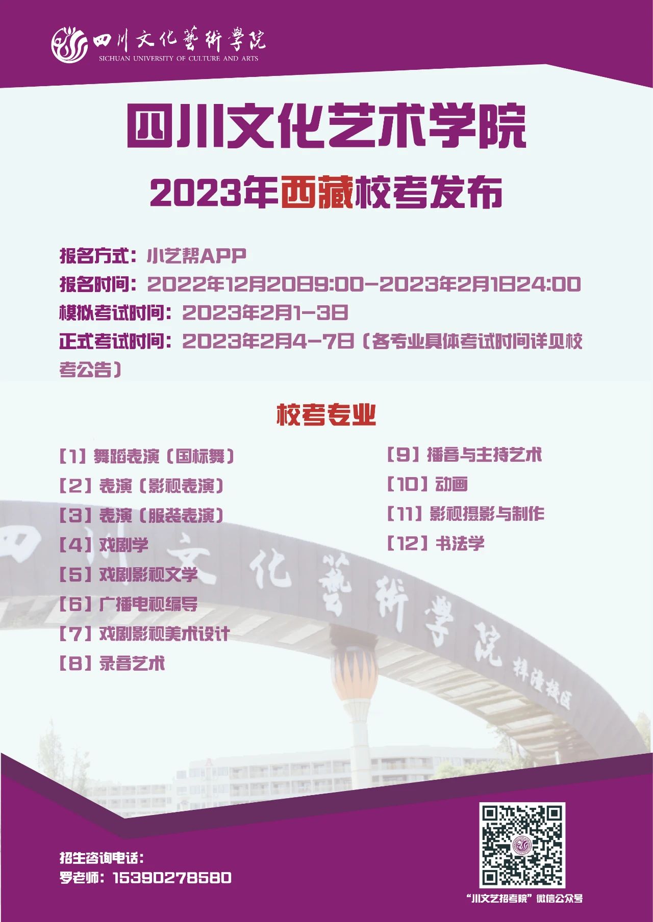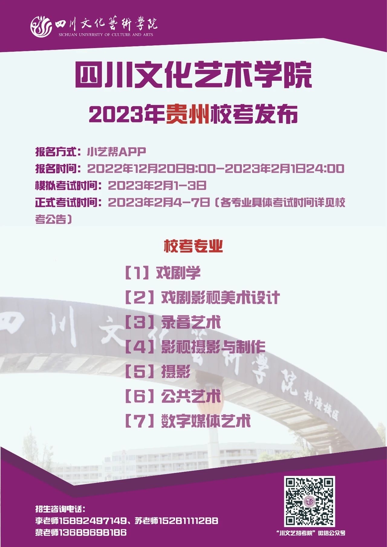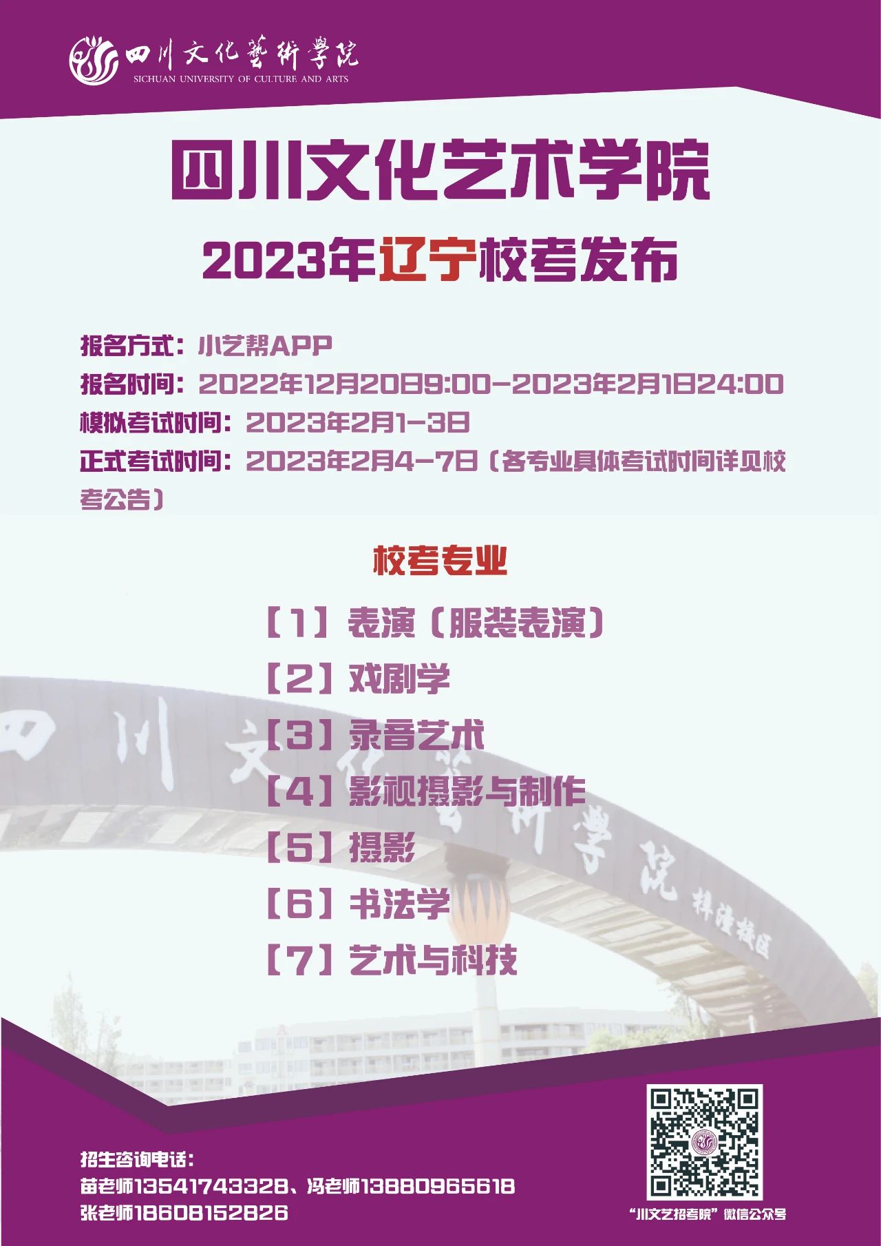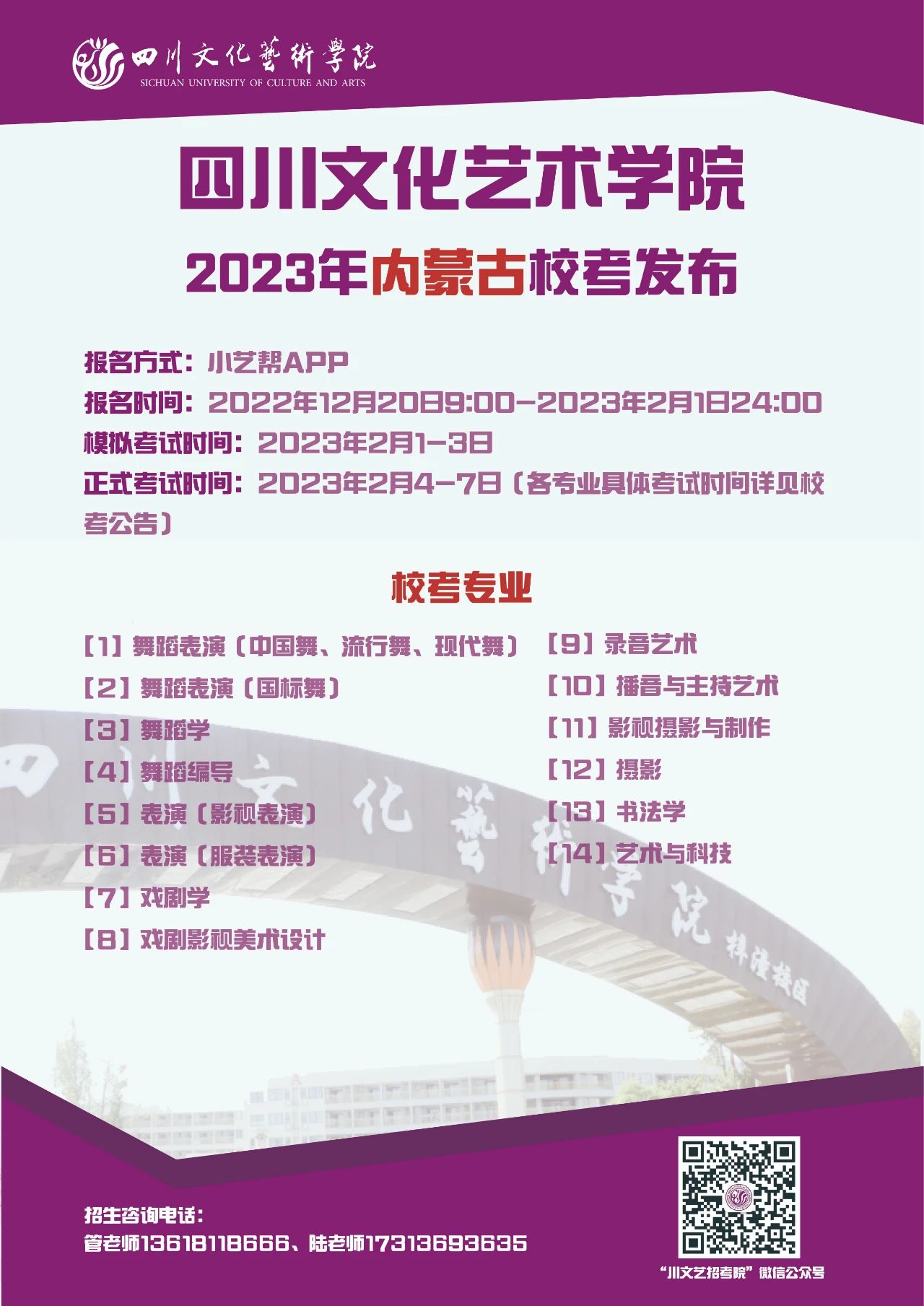 四川文化艺术学院2023年省外校考专业发布啦!