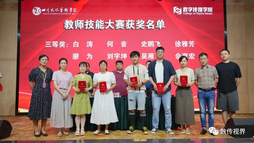 会议第三项,由陈继光副院长宣读《数字传媒学院2021-2022-2学期院级教师教学技能大赛决赛获奖名单》。并由学院领导为获奖教师颁发证书、奖金。