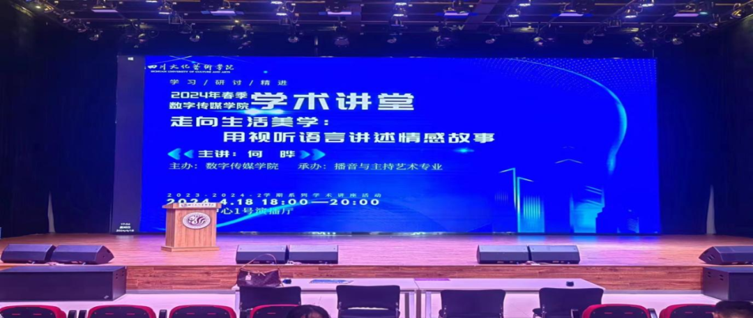 日,梓潼校区融媒体一号演播厅内座无虚席,我院播音与主持专业的师生们齐聚一堂,共同聆听学术讲座。本次讲座由播音与主持艺术专业专任教师何晔主讲,主题为‘走向生活美学:用视听语言讲述情感故事’旨在探讨技术媒介文化下的‘日常生活审美’转向以及从审美创作视角观察主持传播。