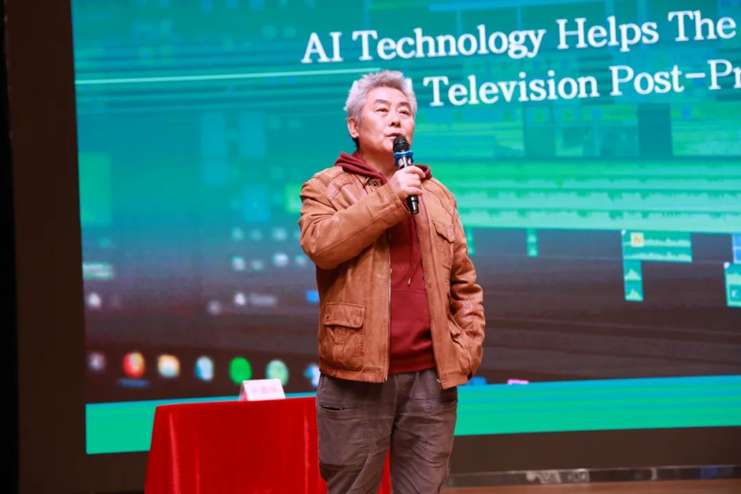 在数字化浪潮汹涌的今天,传媒艺术教育正以前所未有的速度拥抱技术创新。12月4日下午,数字传媒学院于梓潼校区融媒体中心一号演播厅,圆满举办了“AIGC背景下的传媒艺术教育创新与实践”系列讲座的第六场精彩活动,本次活动聚焦“AI技术对影视后期制作软件应用的革新助力”及“AIGC技术如何为短视频制作插上翅膀”,我院传媒类学科带头人朱智忠、广播电视编导专业特聘教授苏娜、广播电视编导专业负责人亓怀亮与广播电视编导专业全体师生参加了本次讲座,共同探索AI技术在传媒艺术领域的无限可能。