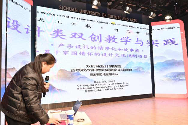 在交流中,易晓蜜教授亲自列举了四川音乐学院等重点高校在一流课程建设和学科建设的举措和成果,尤其以艺术与科技专业为例,对其多年的教学经验和教研案例进行了重点分析。在专业建设方面,易晓蜜教授提出了实践基地、金课、教改教学等一体化建设模式;在教研方面,提出了项目、论文、比赛、专利系统性教研模式。而对于数字传媒学院艺术与科技专业的教师团队,易晓蜜教授更是分享了丰富的个人成长经历,例如国家艺术基金、西部计划项目,以及国内优秀设计类比赛的申请方法和重难点,对教师们的个人发展提出了宝贵意见。