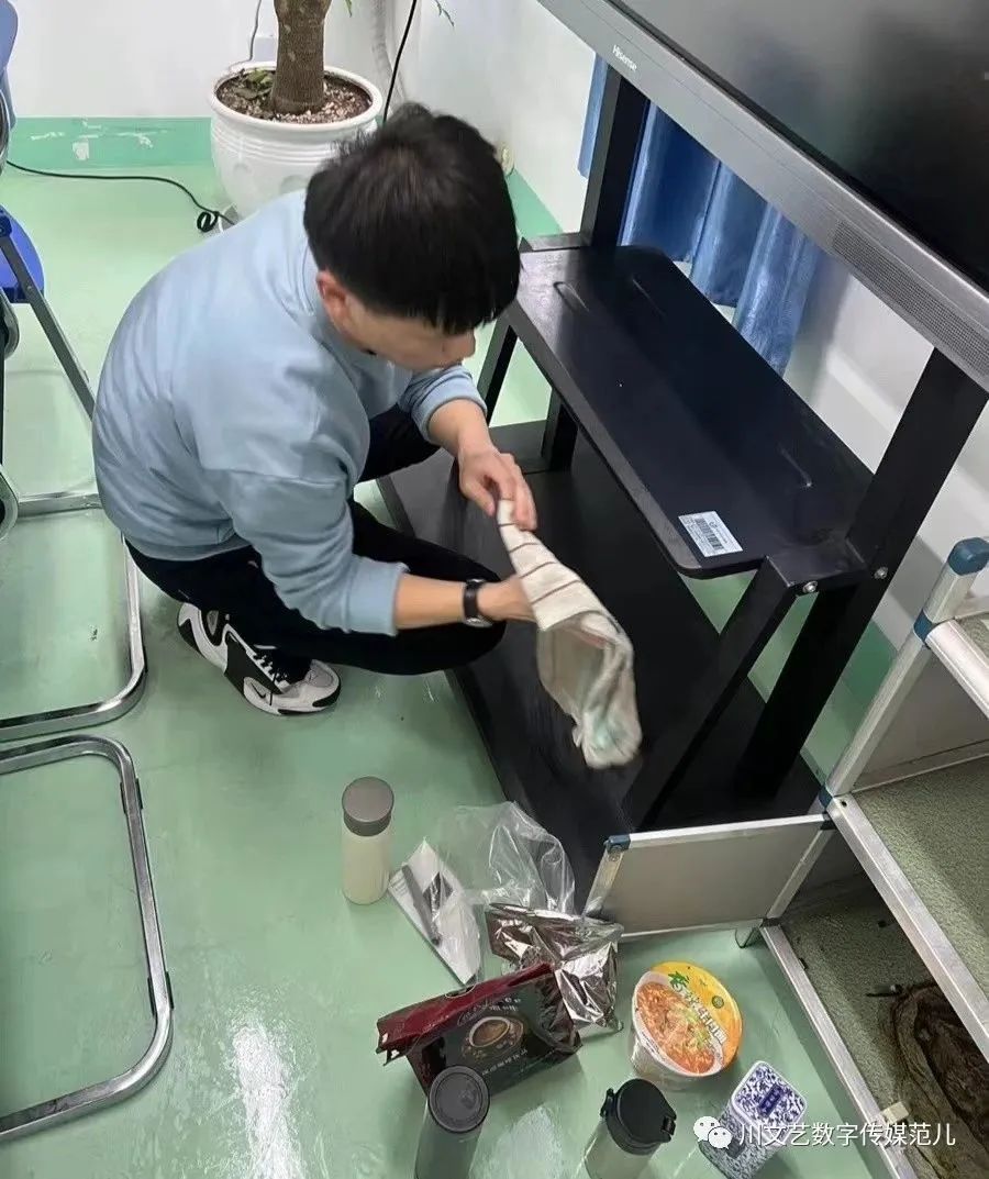 大扫除期间,师生合理分工,密切合作,对地面、墙壁等进行认真清理,有的拖地、有的擦窗户、有的清理卫生死角垃圾……校园里随处都能看到老师和学生们辛勤劳动的身影。